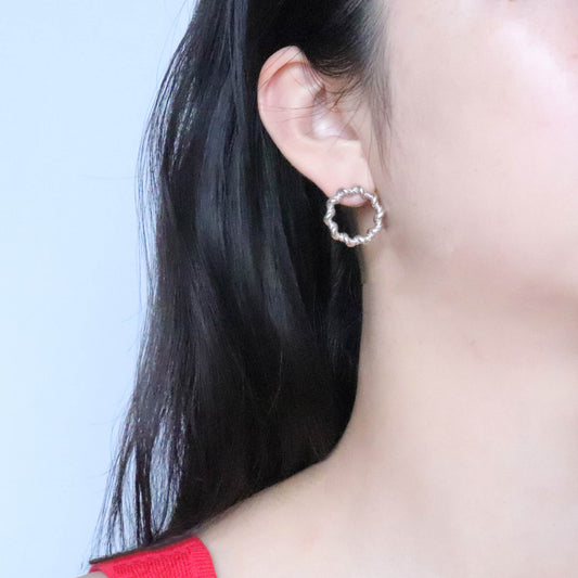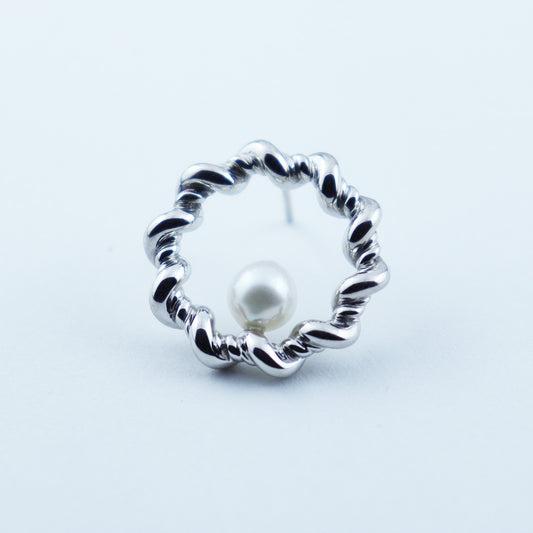 Shimenawa earrings with Akoya pearl / Sterling silver